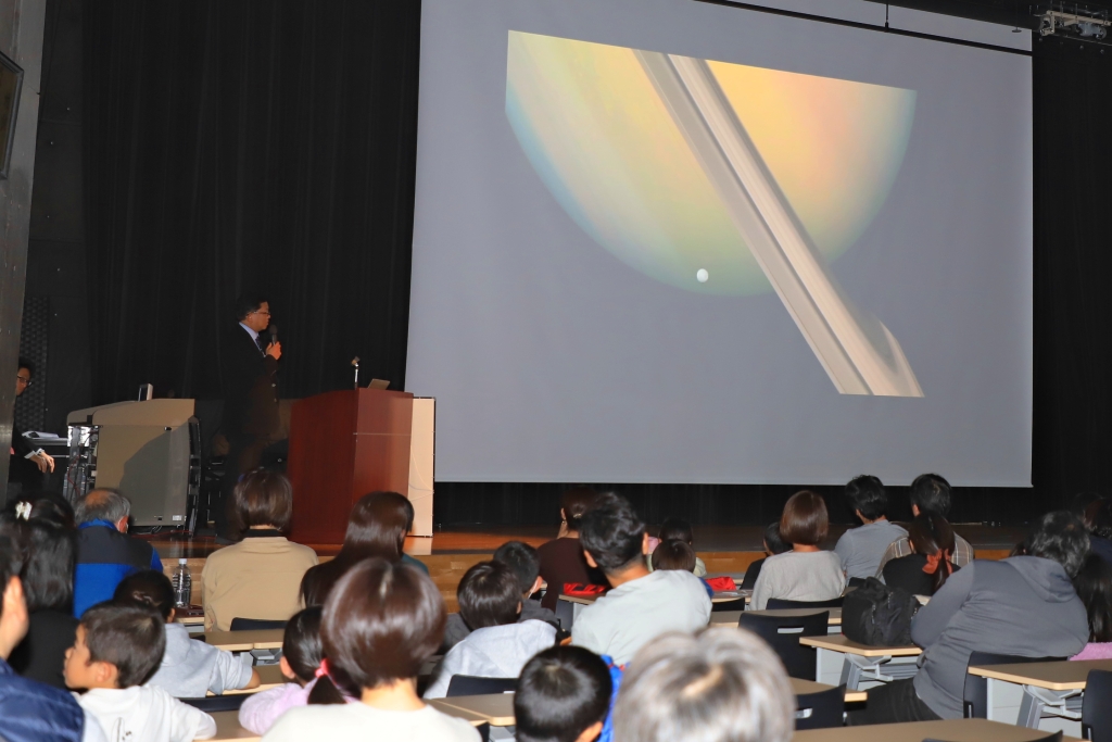 最初にあったホールでの説明会では、見たこともない天体や動物の写真,生徒たちの写真が見られて,60分間が本当あっという間だった。