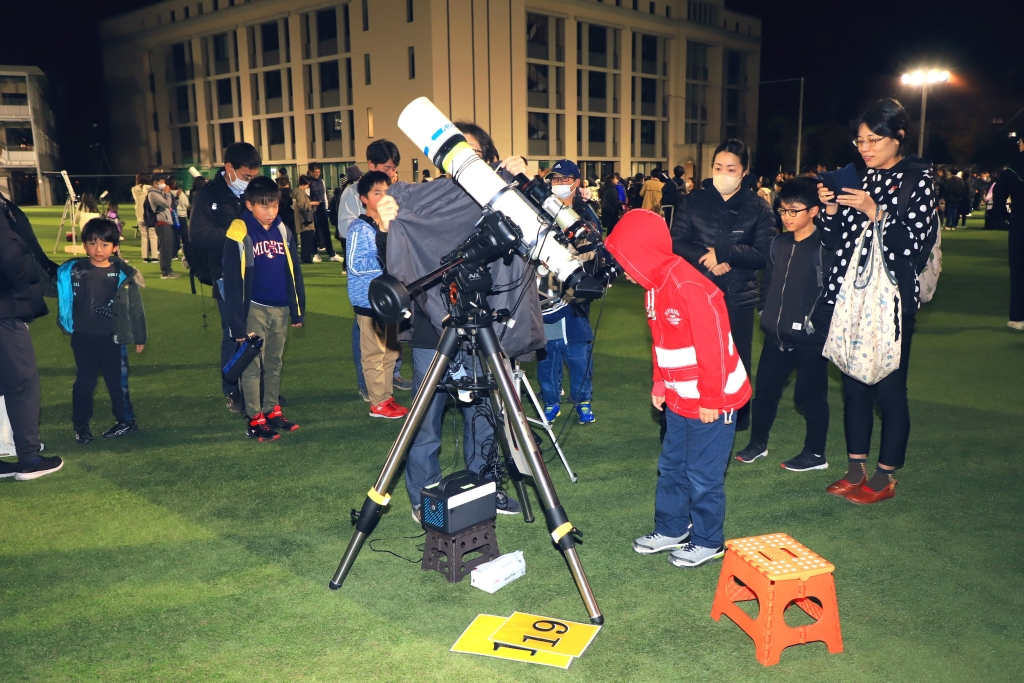 11月9日(土)の夜に「STAR WATCHING 2024」を開催しました。今年12回目となる本行事は、学校が主催する天体観測会としては日本一の規模に成長いたしました。これまで支えてきてくださった皆さま方に厚く感謝申し上げます。さて当日は、数日前に高確率で雨だった天気予報をくつがえし、快晴の星空に恵まれました。恵みはさらに続き、観測中に中国の宇宙ステーションが大阪上空を通過したため、全員で観察することに成功。暗い校庭から時ならぬ500人の歓声があがりました。それではその様子の一端をお見せします。
