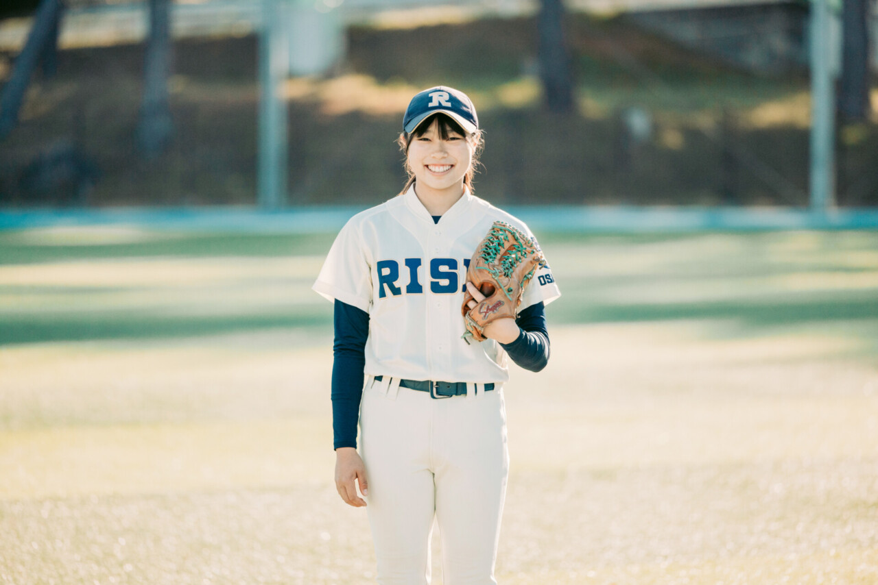 「私は、野球に対しても、チームメイトに対しても誠実でありたいと思っています。そして、自分の思いを、自分の言葉で伝えたいです。私たち女子野球部は、野球をする目的を、『チームの絆を深めて最高の瞬間を作り、観客のみなさんに女子野球のおもしろさを伝えること』と決めていて、そのためにキャプテンとして何ができるか、いつも考えています。まずは練習で教えていただいたことを自分の頭でしっかり理解することが大切だと思うのですが、その面で、言語技術の授業で学んだことが活かされています」